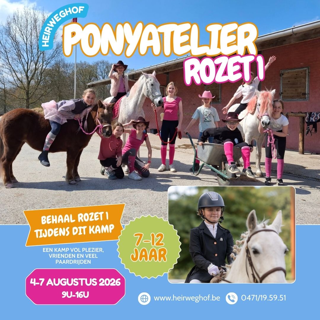 • Ponyrijden in kleine groepjes, we werken samen naar Rozet 1 ( paardensport Vlaanderen)